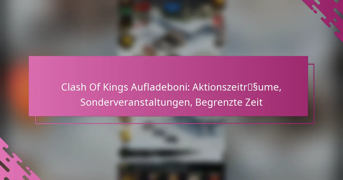 Aktionszeiträume für Aufladeboni in Clash of Kings finden typischerweise während spezieller Events und saisonaler Feierlichkeiten statt. Diese Boni können den Spielern zusätzliche Ressourcen und Belohnungen bieten, die ihr Spielerlebnis verbessern.